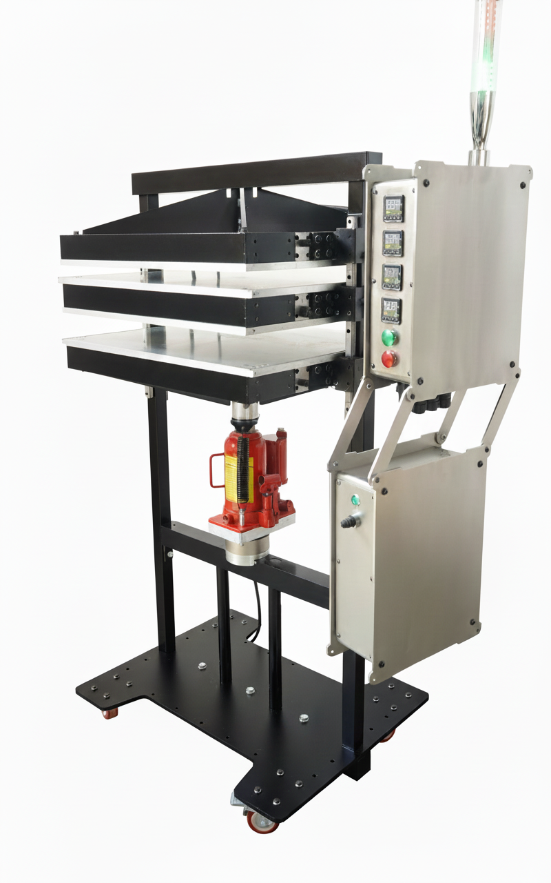 Flexible, modular dual sheetpress, including a heat and cooling press.